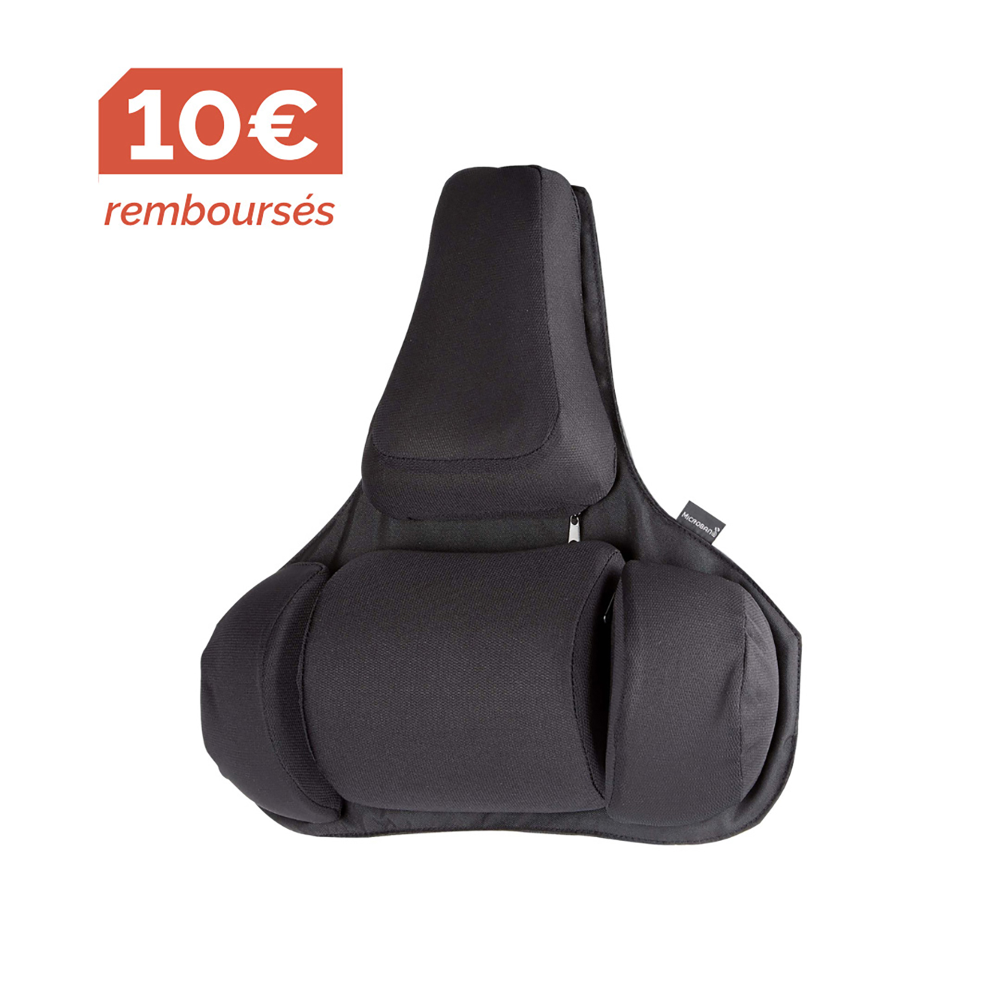 Ondersteunt wervelkolom en lendenwervels dankzij de 4 met mousse gevulde kussentjes die uw lichaamsvorm. Kan op elk type stoel bevestigd worden dankzij het driehoekige "Tri Tachment"-mechanisme, voor een grote stabiliteit. Product goedgekeurd door de Europese wetgeving inzake gezondheid en veiligheid op de werkplaats.