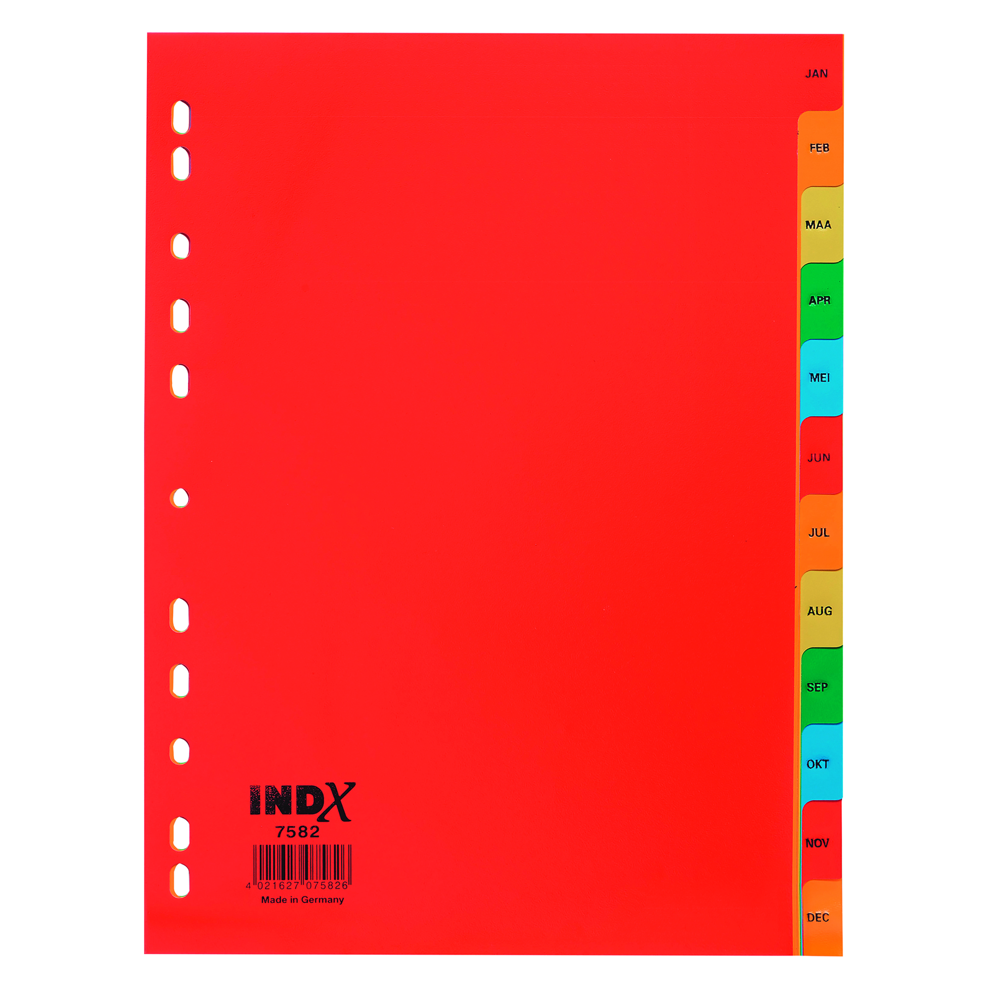 ProductinformatieMaandelijks formaat. A4. In polypropyleen 12/100, 12,5/100 of bristol 170g. 12 verdelingen/meerkleurige verdelingen.
