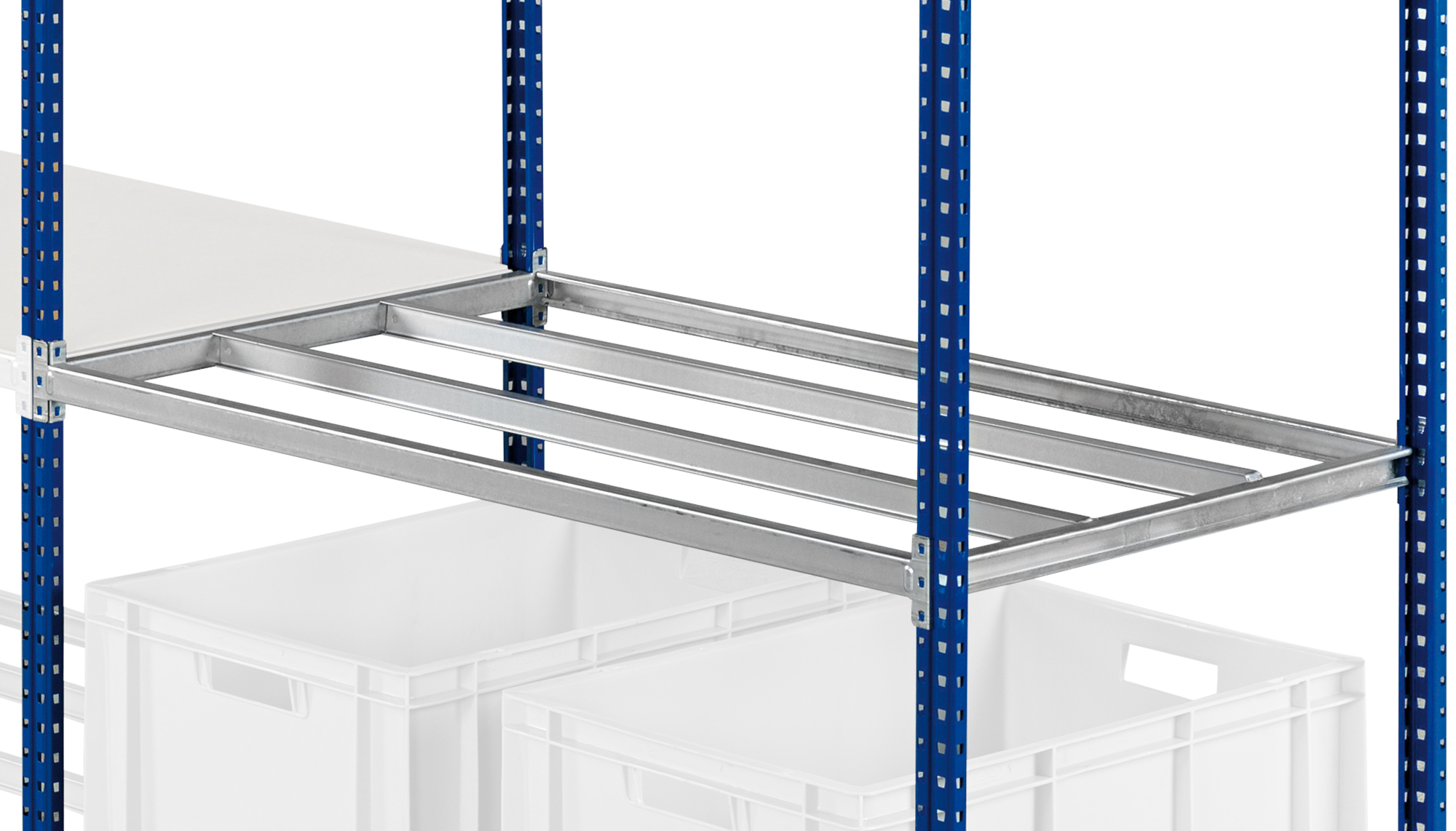 Dankzij hun structuur in gegalvaniseerd plaatstaal 10/10e, met 3 dwarsliggers (diepte 40 cm) of 4 dwarsliggers (diepte 60 cm), zijn deze legplanken bijzonder robuust en bestand tegen hoge belasting.
