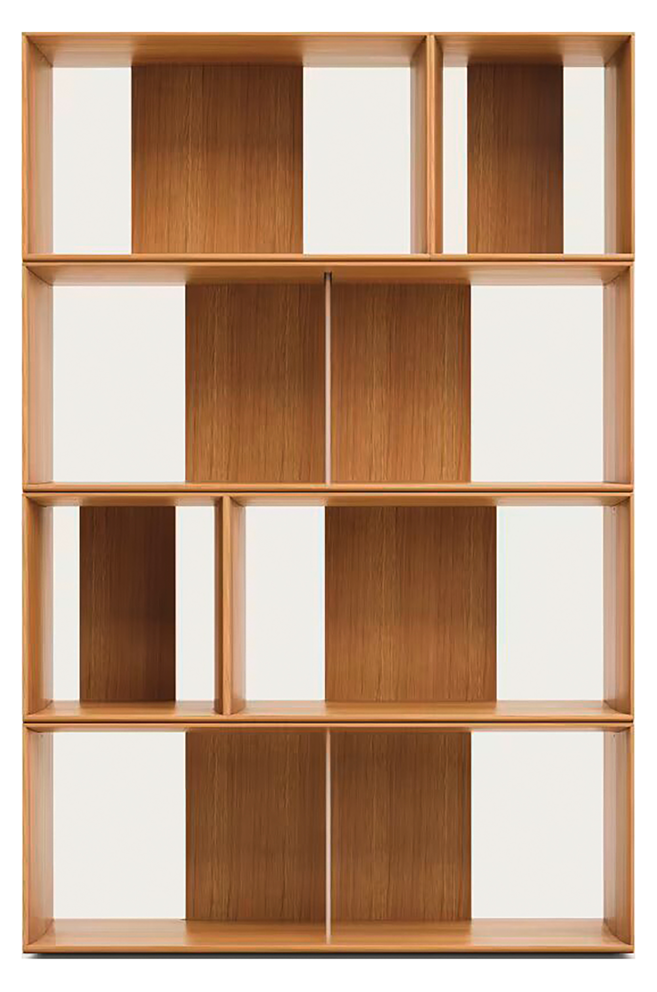 2 modulaire rekken in middelgroot formaat van fineerhout (eikenfineer of walnootfineer).