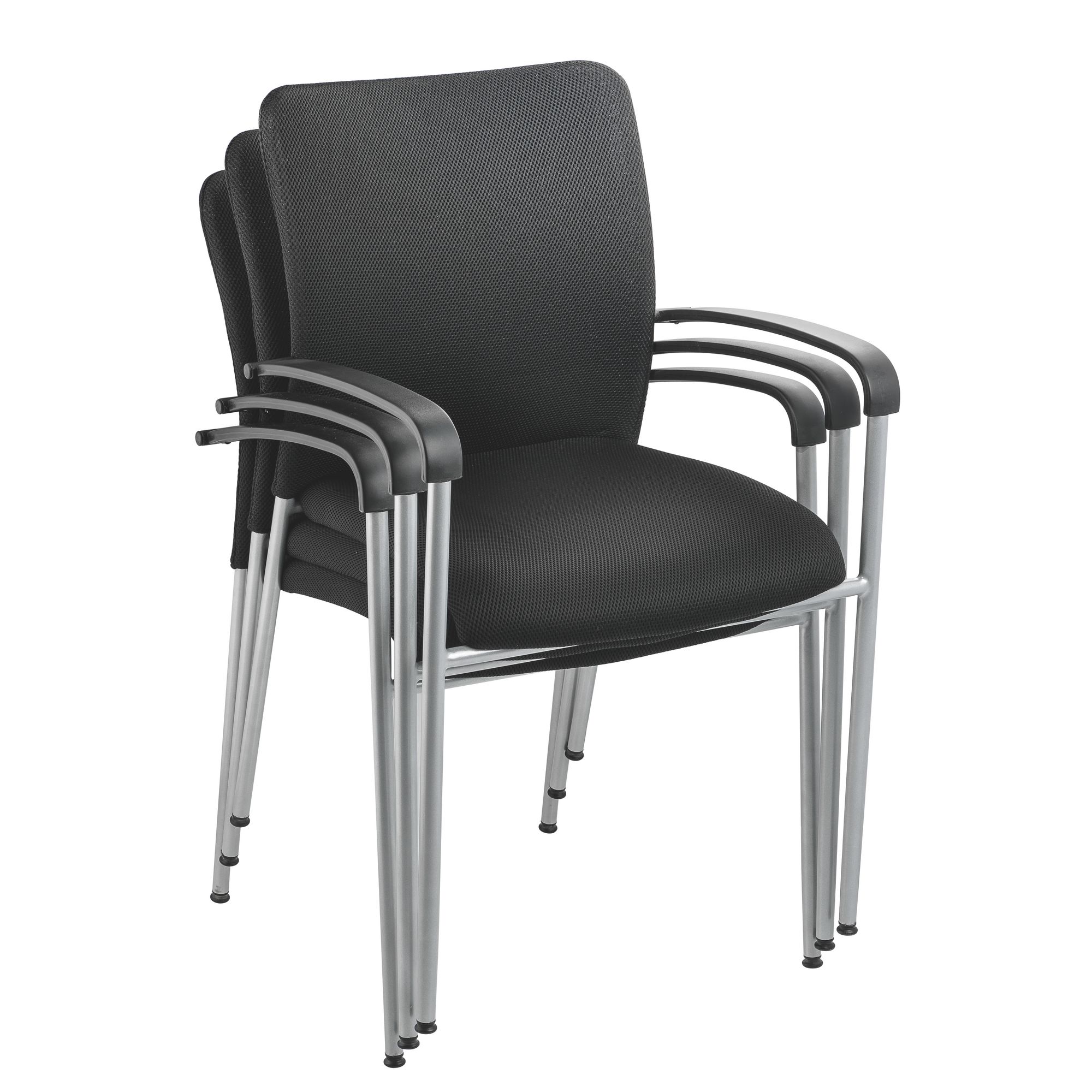 zitting en rug in 100% polyester met honingraatstructuur voor anti-transpiratie. Onderstel met 4 poten in aluminiumkleurig epoxymetaal, uitgerust met slipvrije voetjes.