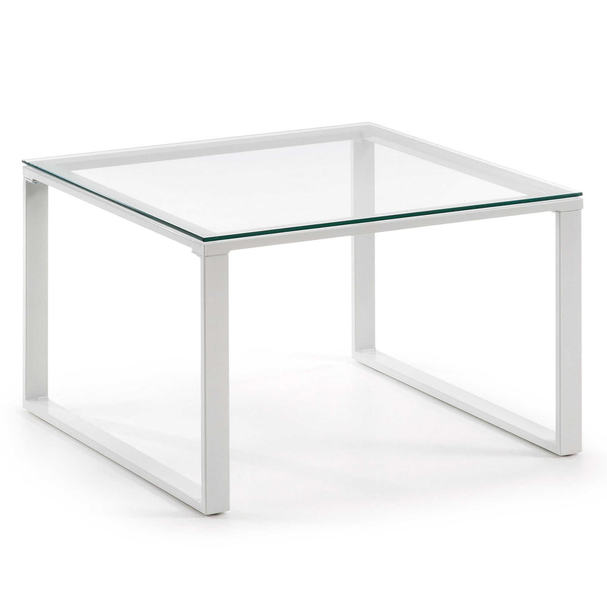 ProductinformatieSalontafel met epoxy gelakt stalen onderstel. Blad in transparant gehard glas. Dikte glas 6 mm.