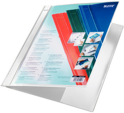 Blauw, A4-formaat, harde PVC-folie, vooromslag doet dienst als transparante zak, 80 mm lamellenmechanisme,