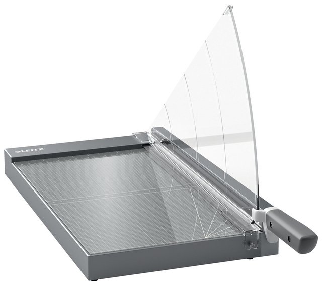 De Leitz Precision Office Pro A3 snijmachine is ideaal om papier, labels, film, foto's, gelamineerde documenten, kaart en karton te snijden en perfect voor algemeen kantoorgebruik.*Producteigenschappen;* Krachtige en robuuste A3 snijmachine, ideaal voor veelvuldig en intensief kantoorgebruik.* Het roestvrijstalen mes van hoge kwaliteit snijdt tot 25 vel papier van 80 gram of andere materialen zoals etiketten, film, foto's, gelamineerde documenten, kaart en montagekarton.* Unieke EdgeGlow lichttechnologie verlicht het snijvlak voor meer zichtbaarheid en maximale precisie.* Ergonomische handgreep garandeert elke keer opnieuw moeiteloze en nauwkeurige resultaten.* Duidelijke handmatige papierklem houdt het papier stevig op zijn plaats.* Glad glazen werkoppervlak met eenvoudige metrische rasterlijnen, hoekgeleiders en nauwkeurige maataanduidingen voor eenvoudige papieruitlijning.* Sterke maar lichtgewicht aluminium voet met anti-slip rubberen voetjes voor veiligheid en stabiliteit.* De veiligheidskap biedt totale bescherming, terwijl de veiligheidsvergrendeling het mes gesloten houdt wanneer niet in gebruik.* Hoogwaardige Leitz snijmachine met 5 jaar garantie (normale slijtageonderdelen en accessoires uitgezonderd).