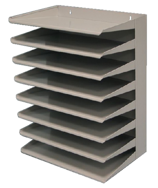 Productinformatie* Stalen sorteerrek met 8 vakken. * Om uw papieren overzichtelijk te houden. * Grondmaat 38x25cm. * Hoogte,8delig: 50cm. * Gemoffeld staal. * Zowel staand als hangend te gebruiken.