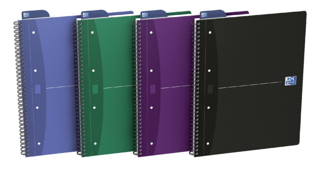 Oxford Office notitieblokken Met dubbelspiraal Optik Paper 90grs papier, laat geen inkt door en is extra wit Schrijft prettig en snel door het extra gladde oppervlak. *Met scanfunctie Scribzee 90vel Soepele kartonnen kaft Kaft in assorti kleuren Met verplaatsbare bladwijzer/liniaal.