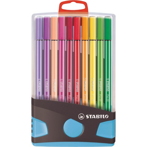 Hoogwaardige kleurstift met reukloze inkt op waterbasis. Punt met diameter van 1,4 mm. Ontwikkelde grondstoffen zorgen voor een schitterende glans en kleurintensiteit. Regenereerbaar: indien de stift na 48 uur open blijven uitgedroogd is, plaatst u het dopje er weer op en de stift is weer bruikbaar. Open verandert de houder in een bureauset, gesloten is de houder makkelijk mee te nemen. 20 stiften in een plastic doos.