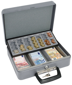 ProductinformatieMet draaghendel, voor munten en bankbiljetten, capaciteitcontant geld: 137,60 EUR, cilindrische veiligheidssluiting,Inclusief 2 sleutels, holle bankbiljettensorteerders met 3 compartimenten,(149658012)afmetingen: (L)300 x (D)240 x (H)90 mm