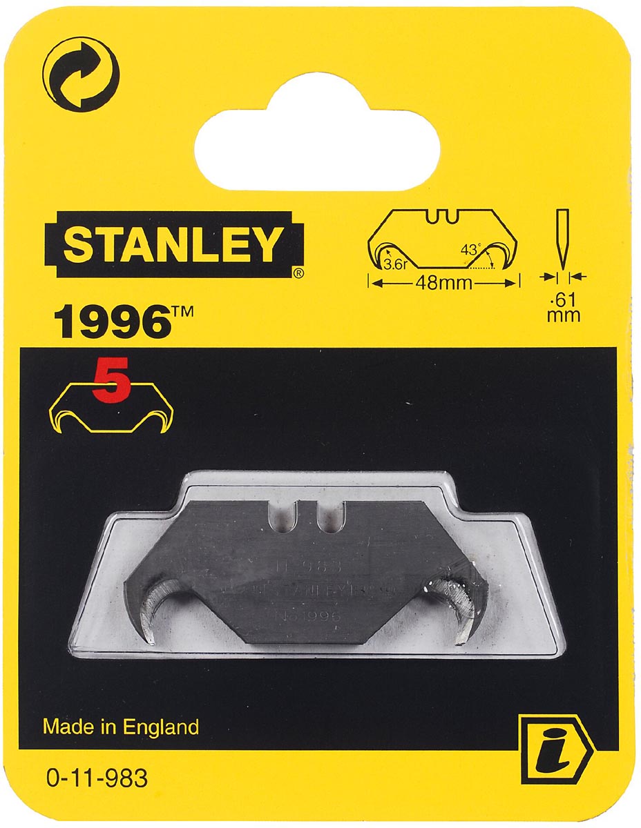 ProductinformatieReservemesjes 1996 zonder gaten Haakmesje met scherpe punt voor doorboren en snijden van vloerbedekking, plastiek en verpakkingsmateriaal Lengte: 50 mm Dikte: 0.65 mm Blister van 5 stuks