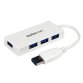 StarTech.com Draagbare 4-poorts SuperSpeed USB 3.0 hub - 5Gbps - wit. Hostinterface: USB 3.2 Gen 1 (3.1 Gen 1) Type-A, Hub-interfaces: USB 3.2 Gen 1 (3.1 Gen 1) Type-A. Overdrachtssnelheid: 5000 Mbit/s, Kleur van het product: Wit, Materiaal behuizing: Kunststof. Type stroombron: USB. Breedte: 36 mm, Diepte: 80 mm, Hoogte: 14 mm. Breedte verpakking: 164 mm, Diepte verpakking: 133 mm, Hoogte verpakking: 42 mm