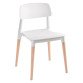 Materiaal: structuur in polypropyleen. Onderstel in gelakt massief hout, met cilindervorm en slipvrije voetjes. Kleur: beuk. Afmetingen zitting: B 43 x D 44 cm, H 45 cm. Rug H 18 cm. Stapelbaar per 4. Gemonteerd geleverd.