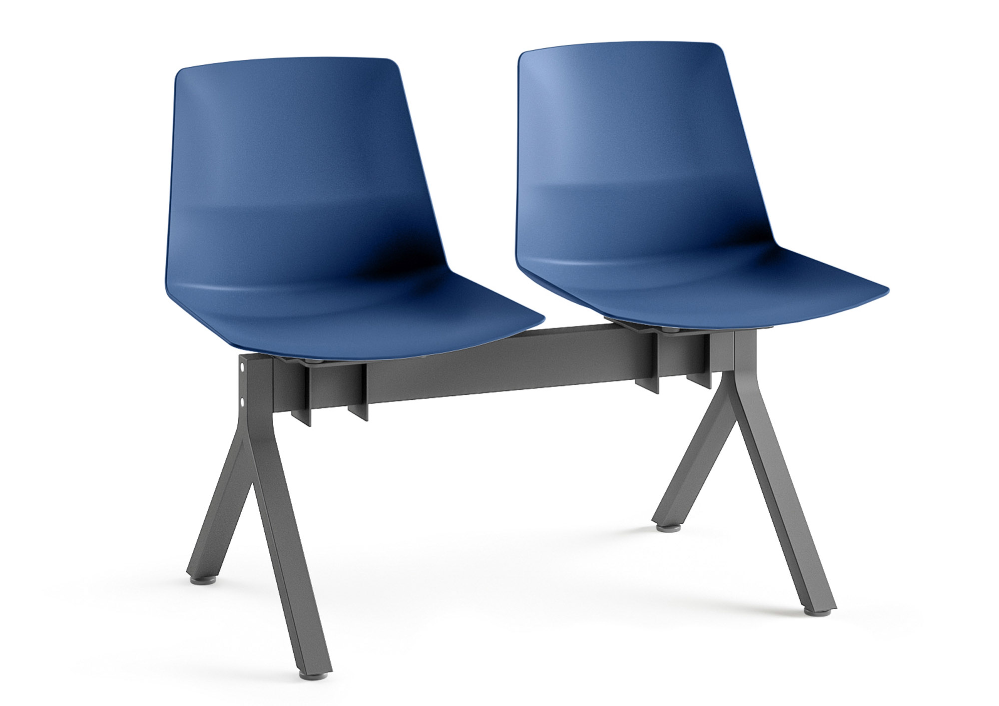 Materialen: De zitting is voorzien van een stevige schaal van polypropyleen, dikte 8 mm. De balk- en voetstructuur is van staal, met een afwerking van aluminium of antraciet.