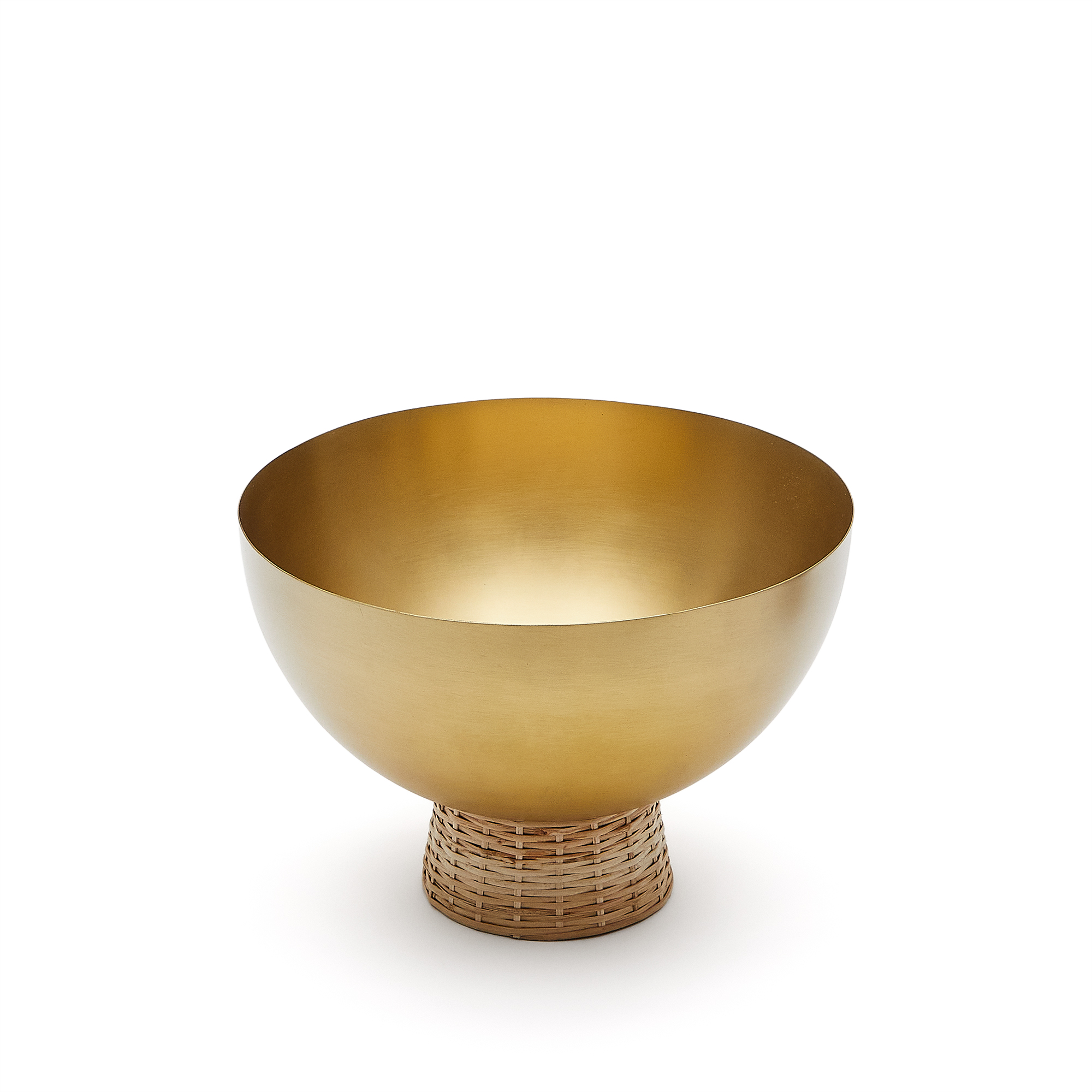 • Roestvrijstalen kom met vergulde afwerking en rotan.