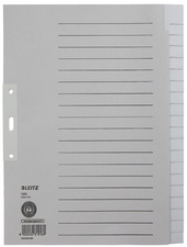 Productinformatie15 tabs, grijs, halfhoog, 100 g/m², perforatie: 80 mm,met versteviging van de gaten van het 1e vel, bedrukking vanlijnen op het 1e blad voor inhoudsregistratie,verstevigde lipjes en gaten, afmetingen: (B)240 x (H)200 mm.