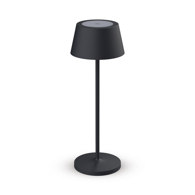 Moderne en functionele accu-oplaadbare tafellamp, de MAULnina onderscheidt zich in de markt met kwaliteit door de unieke Lifepro akku (voorkomt spontaan akku gevaar), zware voet, veiligheid voorop door de inzet van de lifepro accu. * Volledig opgeladen heb je 10-12 uur licht op tafel, met volledige inzet van de lamp, dimbaar met de touch panel bovenop de lamp. * Productvoordelen; * Lichtbron type LED, Spanning 5 V, zware voet voor deze lamp wat het gebruik buiten bevordert. * Lichtsterkte lamp: 640 Lux bij 25 cm afstand * Aantal lichtbronnen: 1. * Lichtstroom 210 Lumen. * Energie-efficiëntieklasse F (spectrum A tot G). * Kleurtemperatur 2.700 Kelvin (warm wit), Kleurweergave-index 96. * Gewogen energieverbruik 3 kWh/1000 h * Levensduur 25.000 h. * Afmeting van de lamp hoogte 340mm met een Ø 120mm. * Spatwaterbestendig (IP54).