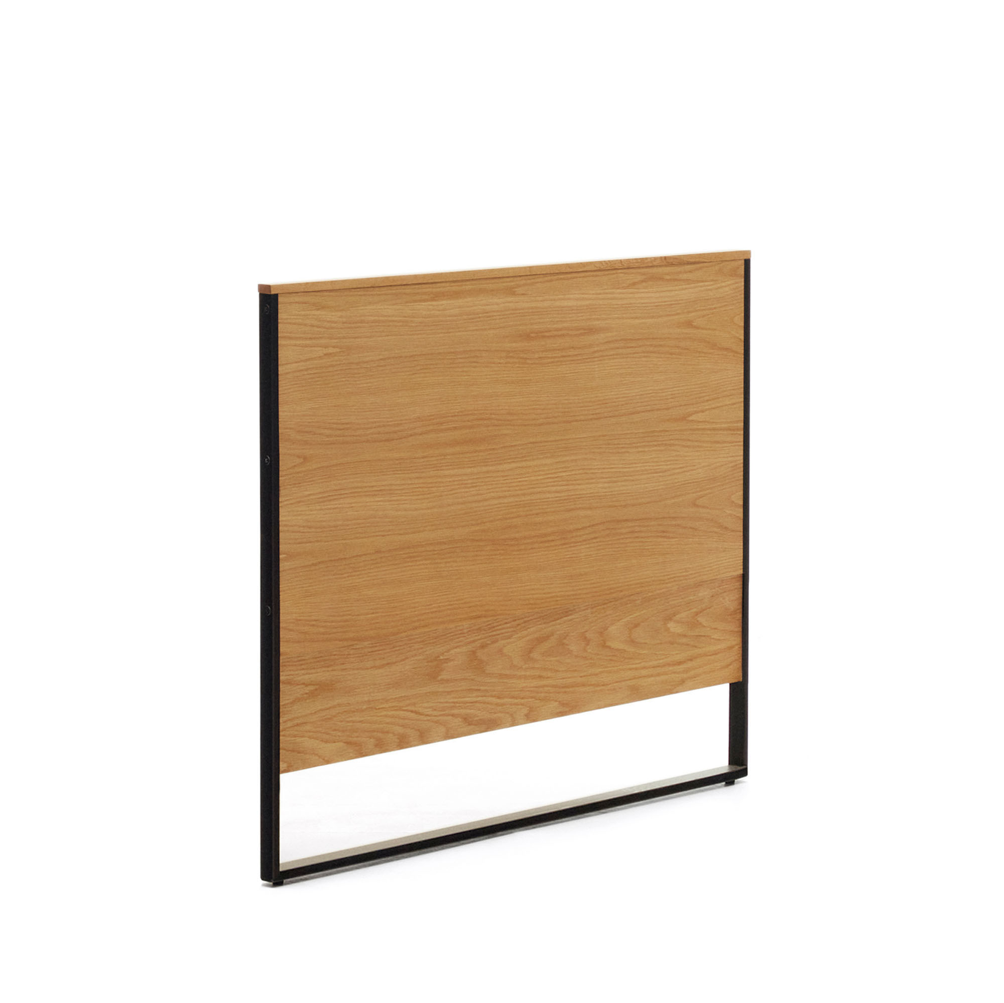 Hoofdbord uit de Taiana collectie, eiken fineer met zwart gelakte stalen poten, voor een natuurlijke uitstraling met een industrieel tintje.- Eiken fineer hoofdbord met zwart gelakte stalen poten.