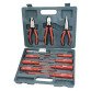 Inhoud: 7 elektro schroevendraaiers, 1 spanningzoeker, 60 mm, 125 - 250 Volt, 1 combinatietang 160 mm, 1 telefoontang recht 160 mm, 1 zijsnijtang, 160 mm.