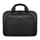 Dit product wordt "ClamShell" genoemd. Dit betekent dat de tas volledig opent dankzij de ritssluiting die rondom het structurele frame van de tas loopt. Dit systeem maakt het gemakkelijker om uw laptop in de tas te bevestigen met behulp van een klittenbandsluiting die uw laptop omhult en voorkomt dat deze uit de tas valt bij een onverwachte opening van de tas.