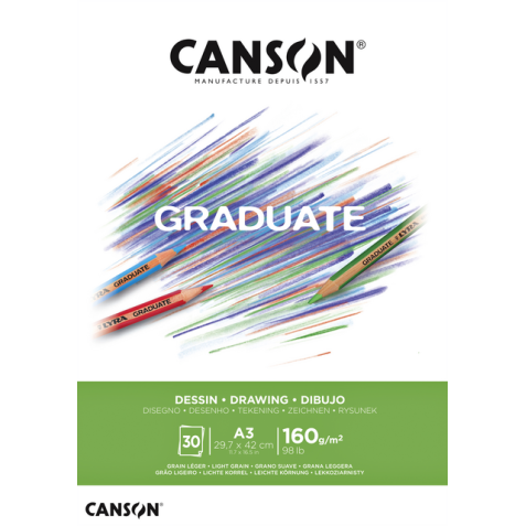 ProductinformatieBlok aan de korte zijde gelijmd met Canson tekenpapier Natuurlijk wit papier Ideaal voor potlood-, pastel of houtskooltekeningen.
