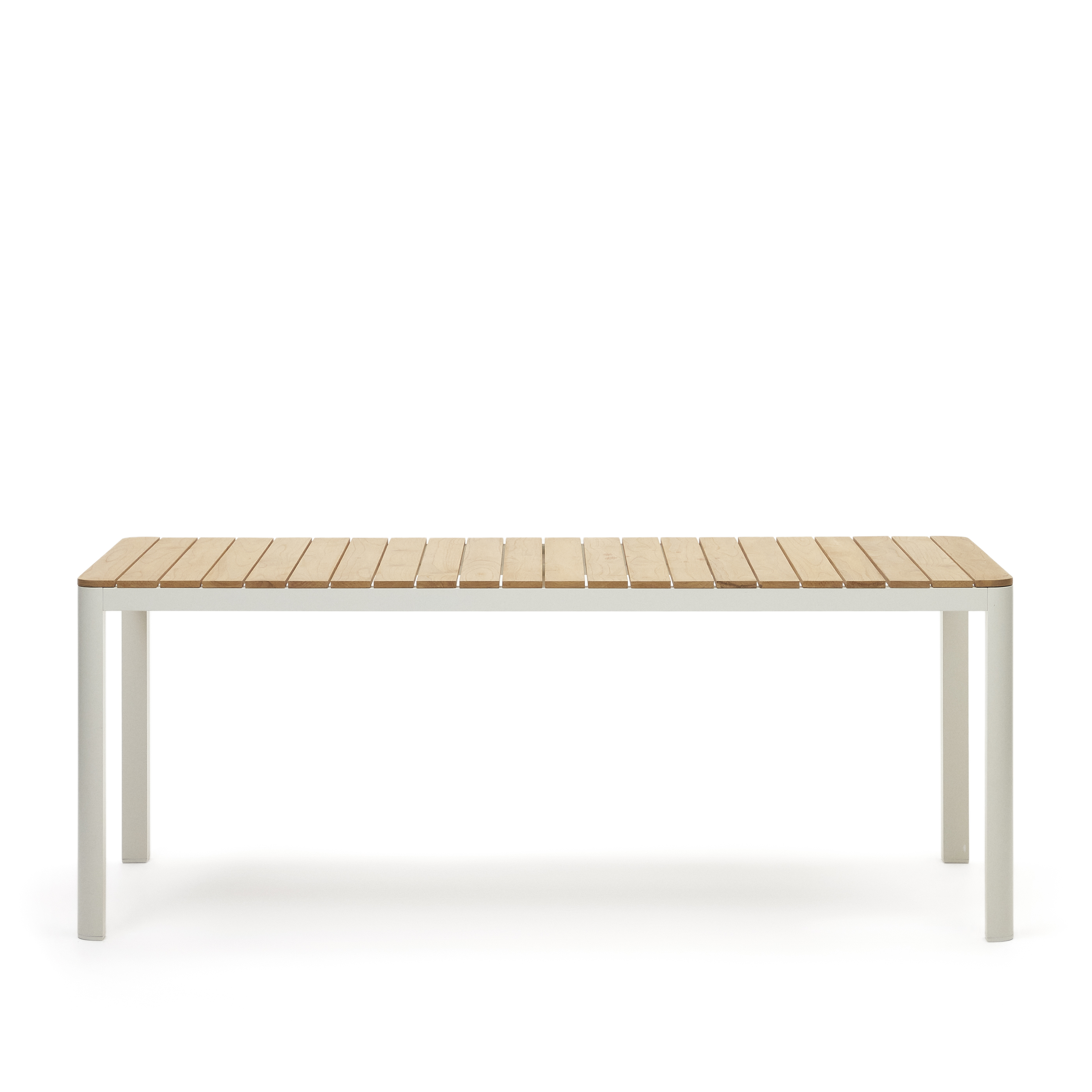 Aluminium tafel met massief teakhouten tafelblad.