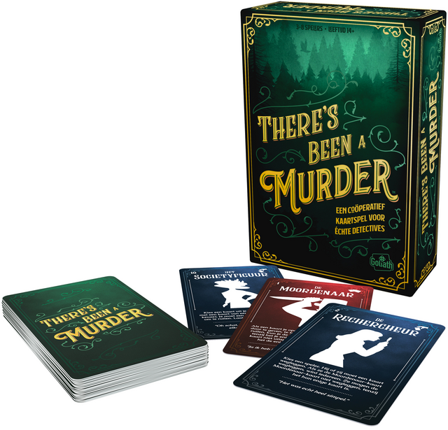 Er is een moord gepleegd in een sober landhuis in het Engeland van de jaren 1930. Iedereen wordt verdacht, maar niemand wil erover praten! Werk samen om het mysterie op te lossen, of ontsnapt de moordenaar aan de rechercheurs? There’s Been A Murder is het ideale spel voor een gezellige, uitdagende en spannende avond met vrienden. Ga op onderzoek uit en zoek de dader! Spelomschrijving In There’s Been A Murder mogen spelers niet praten over de kaarten die ze in hun hand hebben of die ze tijdens het spelen hebben gezien. Door de kaarten te spelen en de instructies te volgen, kunnen de spelers ontdekken wie de sleutelkaarten heeft, waardoor de detective de moordenaar kan ontdekken. Wanneer dit gebeurt, wint iedereen! De spelers winnen als: De Rechercheur-kaart wordt uitgespeeld en ervoor zorgt dat de Moordenaar-kaart moet worden weggelegd. De Moordenaar- en Informant-kaarten in de handen van één speler terechtkomen. De spelers verliezen als: De Moordenaar- en Getuige-kaarten in de handen van één speler terechtkomen. Een speler moet aan het begin van zijn beurt van de trekstapel pakken en er zijn geen kaarten meer in de trekstapel.