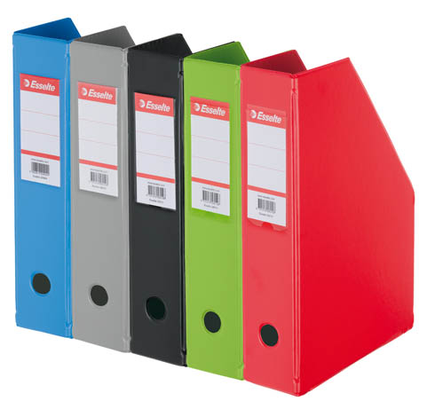 Stevig : extrasterk kartonnen geraamte van 2 mm met plastic (polypropyleen) gelast omhulsel. Groot verwijderbaar etiket. Etikethouder (etiketten meegeleverd), grijpoog. Afmetingen : H 31,5, B 24,5 cm. Rug: 7 cm. Plat geleverd. Eenvoudige montage. Klassieke kleuren (zwart, grijs, blauw, groen, rood).
