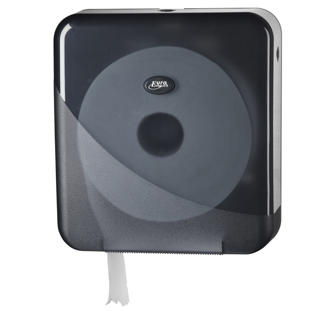 * Euro Jumbo toiletrolhoeder Pearl. * Dispenser welke zeer geschikt is voor druk bezochte locaties. * Veel capaciteit per rol zorgt voor minder vervanging van de rol en daardoor minder arbeid. * Effectief het systeem welke het grootste aantal meters toiletpapier omvat. *Geschikt voor rollen met een maximale diameter van 29cm. * Semi transparant. *Univesele sleutel, afsluitbaar aan twee zijden. *Afmeting 358x331x127mm.