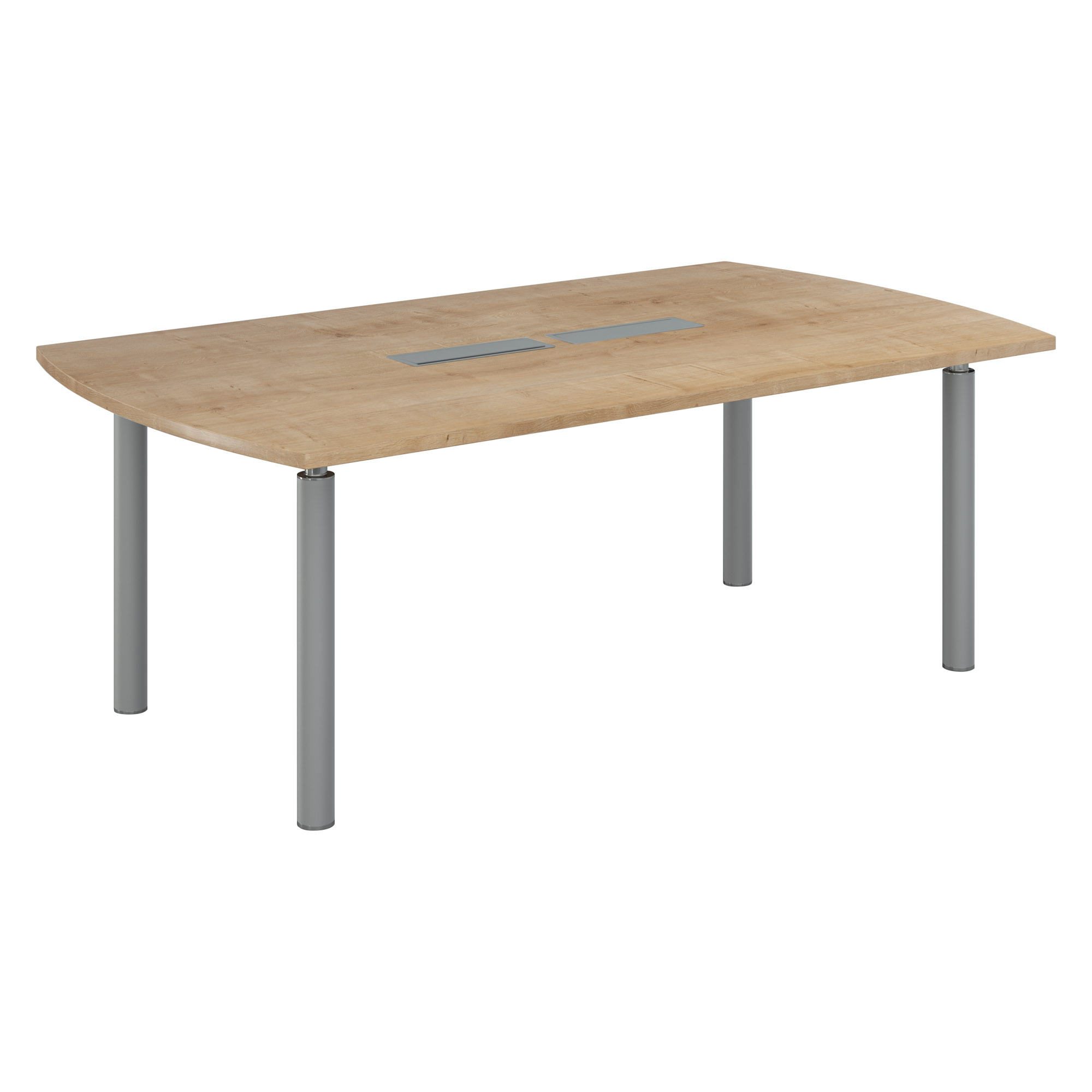 Kies voor uw verschillende vergaderingen voor deze tonvormige tafel van Belem, goed voor ieders comfort. Aan deze tafel kunnen er tot 8 personen zitten. Bovenblad gemaakt van gemelamineerde spaanplaat met een hoge weerstand, een niet-reflecterende bekleding en afgeronde hoeken, voorzien van schokbestendige randen, voor nog meer robuustheid. Deze tafel is voorzien van een dubbele top access voor de doorgang van kabels (B 80 cm) en een kabelgoot (B 90 cm) onderaan het werkblad, zodat u uw informaticamateriaal goed kunt installeren. De stabiliteit van deze stafel wordt verzekerd door de 4 buisvormige, metalen poten met een diameter van 8 cm en een afwerking in wit of aluminium. Montage is optioneel. Keuze bovenblad: perelaar, wangé of lichte eik. PEFC-certificaat. Dikte werkblad: 30 mm. Afmetingen: H 74 x B 200 x D 115 cm.