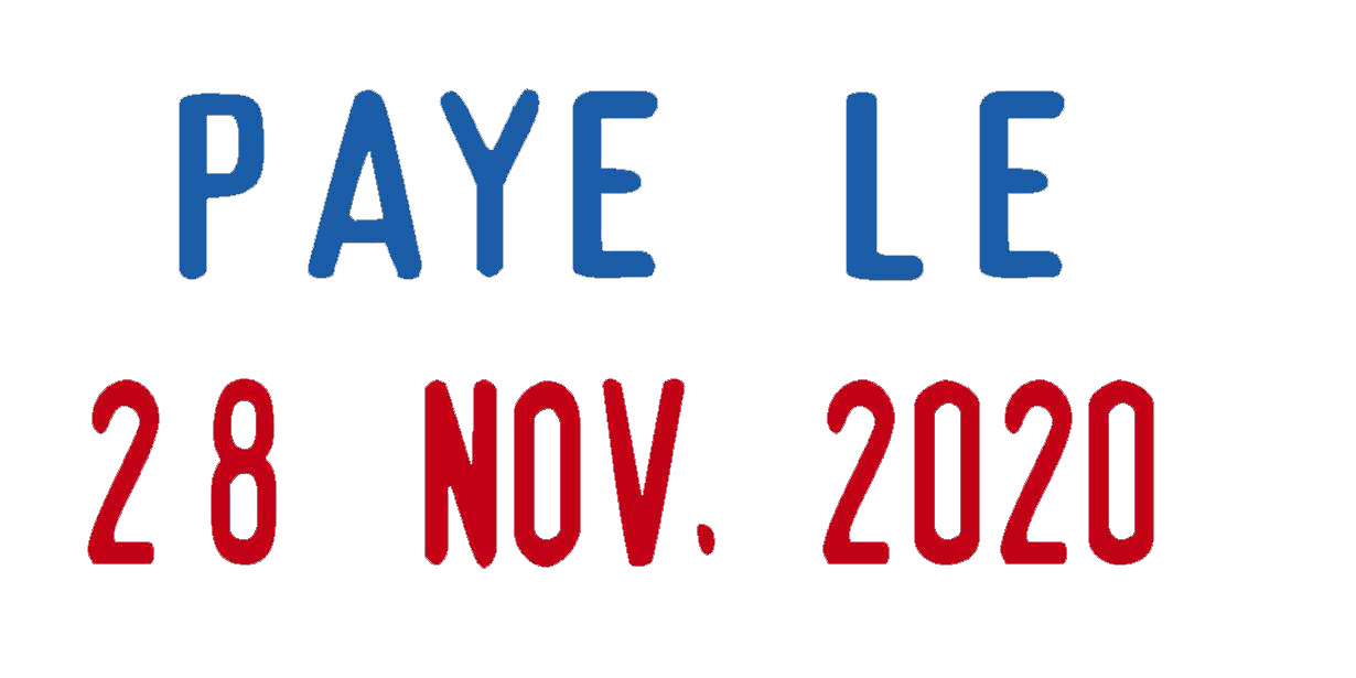 ProductinformatieAfdrukgrootte: 24 x 4 mm, vaste tekst "PAYE LE", datum Frans 23 NOV. 2020, schrifthoogte datum: 3,8 mm.