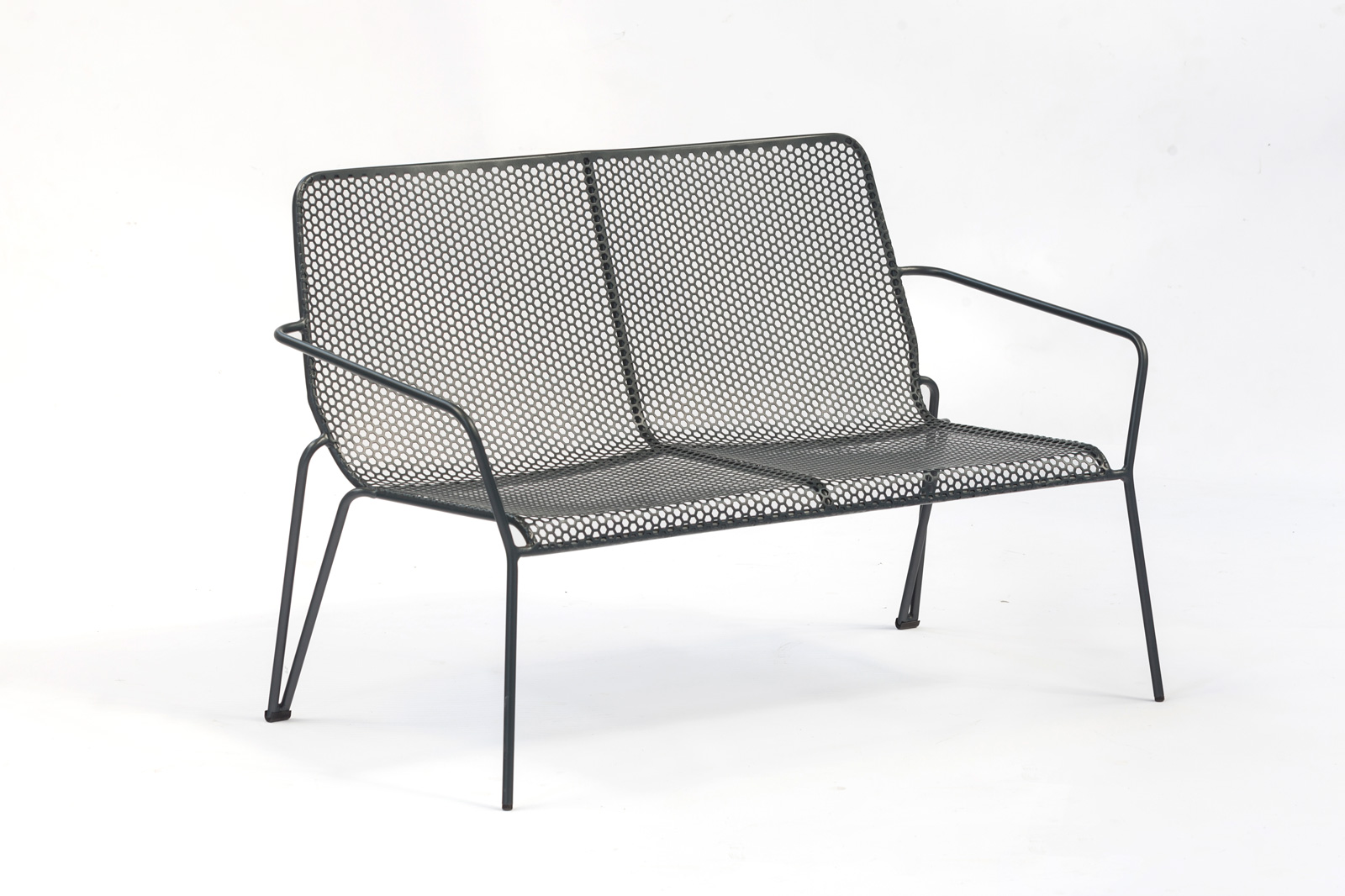 ProductinformatieMaine buitenbank in staal, honingraatmotief. Heel licht. Gemaakt van dubbel behandeld staal: kataforese en epoxylak, zeer goed bestand tegen slecht weer. Stapelbaar voor gemakkelijk opbergen.Breedte: 115 cmZithoogte: 35 cm
