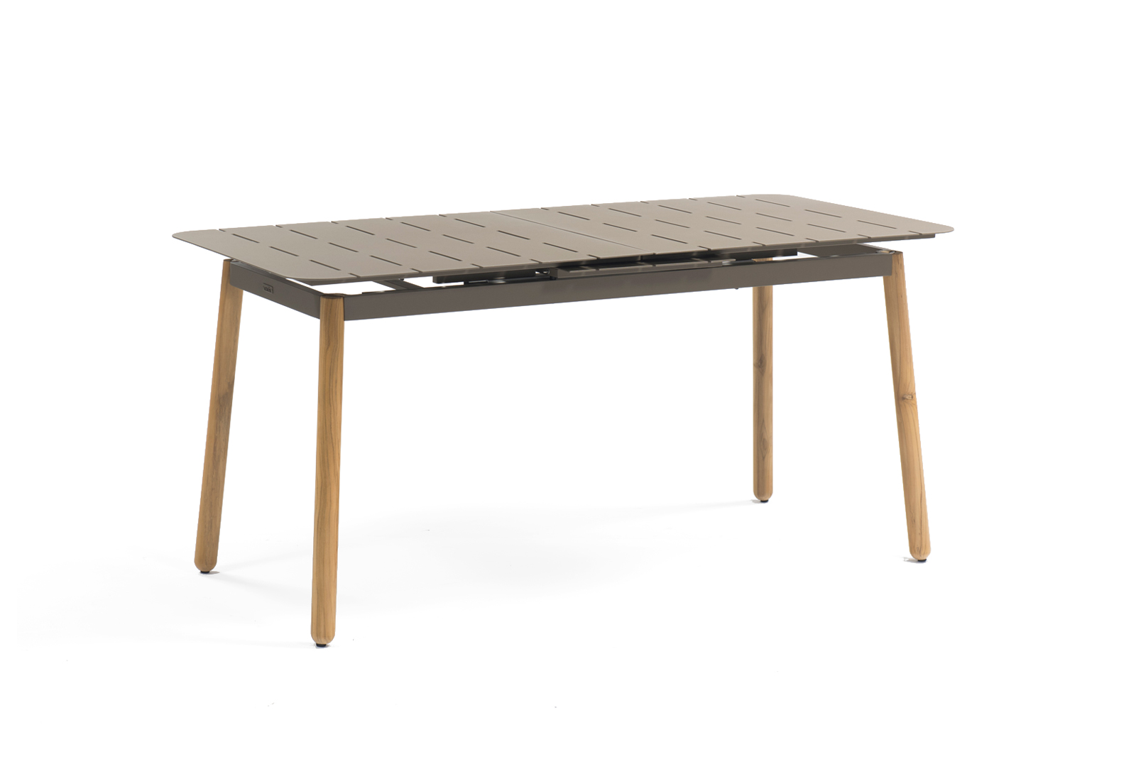 Arnon eettafel voor buiten. Aluminium met naturel teakhouten poten. Deze tafel is ontworpen met de beste materialen die beschikbaar zijn voor buitengebruik en zal vele jaren meegaan in de tuin. Kan gecombineerd worden met de Arnon of Dive stoelen. Zelfmontage.