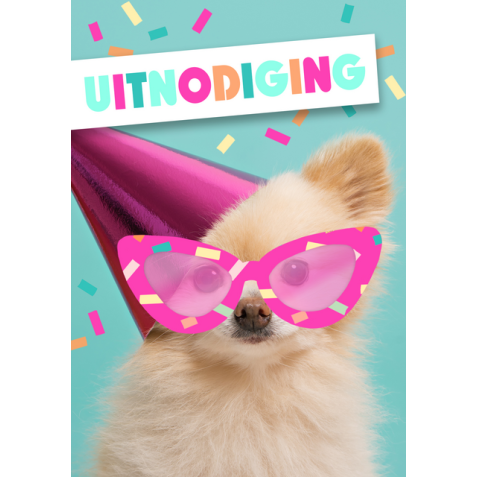 Productinformatie* 5 Stijlvolle uitnodigingskaarten met daarop een hondje met een zonnebril op. * Inclusief enveloppen een mooie uitnodiging voor een gaaf feestje!