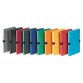 Topkwaliteit. Gegroefde rug, uitzetbaar tot 10 cm dikte. Formaat 24 x 32 cm. Zeer stevige katoenen band met vernikkelde sluiting. Kleppen in stevig karton 25/10 , bekleding gekorreld linnen stopverf of kleur (rood, geel, blauw, groen). Binnenin witte inbindafwerking. Klassementsmappen.