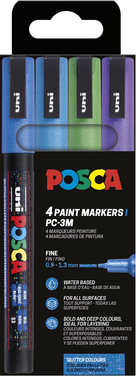 Merkstift op waterbasis en gepigmenteerde inkt. Schrijfbreedte: 1,5 mm. Ideaal om te schilderen, tekenen, schrijven en markeren op elk oppervlak. Met ondoorlatende, heldere kleuren. Dekkend, overschrijfbaar, mengbaar, waterbestendig, constant bij langdurige blootstelling aan licht en reukloos. Geschikt voor alle ondergronden. Permanent op poreuze oppervlakken.