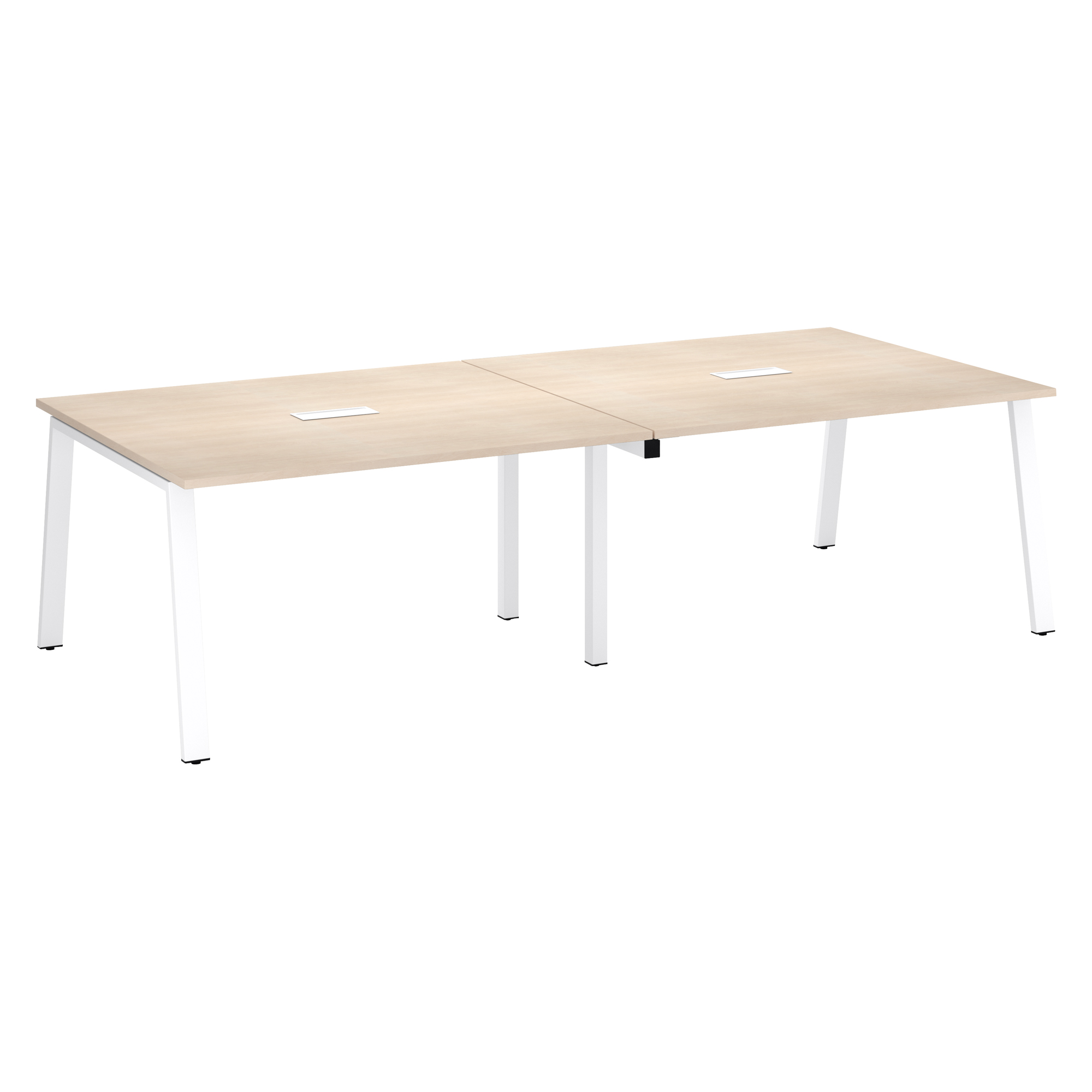 Robuust blad gemaakt van 25 mm dik melamine spaanplaat, behandeld tegen reflecties. Voorzien van 2 mm dikke ABS-randen die bij het decor passen. Metalen boogvormig onderstel. Verstevigingsbalken over de hele lengte van het blad. Een top access en een goot onder het blad vergemakkelijken het beheer van stekkers en connectiviteit voor nog meer efficiëntie.