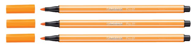 De Pen 68 is verkrijgbaar in heel veel prachtige heldere kleuren, waaronder ook neon- en pasteltinten. Deze diversiteit zorgt voor non-stop creativiteit - daarom past de STABILO Pen 68 perfect bij de huidige trends als handlettering, journaling of sketchnotes. Ook fans van mandalakunst en iedereen die liever tekent of schildert zijn enthousiast over de veelzijdigheid van deze hoogwaardige viltstift. De robuuste punt zorgt voor een constante kleurafgifte en is perfect om gemakkelijk krachtige lijnen mee te zetten of grotere vlakken in te vullen. De punt kan tot 24 uur zonder dop zonder uit te drogen - perfect om lekker door te kunnen werken aan je creatieve project. De kleuren kunnen worden gemengd met water voor prachtige aquareleffecten. De Pen 68 is vanaf heden duurzamer dan ooit: vanaf heden is de dop en penbehuizing gemaakt van 96% bio-gebaseerd kunststof volgens massabalans benadering.* Geproduceerd in Duitsland * Dop en penbehuizing gemaakt van 96% bio-gebaseerd kunststof volgens massabalans benadering* Inkt op waterbasis kan worden gemengd met water voor prachtige aquareleffecten* Robuuste M punt ca. 1 mm* Kan tot 24 uur zonder dop zonder uit te drogen* De dop past achterop de viltstift* Verkrijgbaar in 65 kleuren. Alle kleuren los verkrijgbaar. * De premium viltstift STABILO Pen 68 in de kleur: oranje (54)