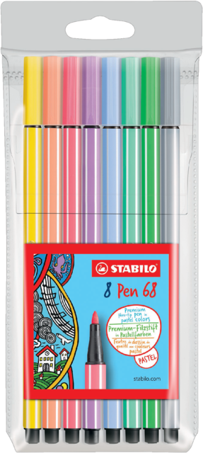 Schrijfbreedte 1mm. Inhoud:68/11 ijsblauw-68/13 ijsgroen-68/16 licht smaragdgroen-68/24 citroen geel-68/26 apricot-68/29 roze-68/59 licht lila-68/94 lichtgrijs.