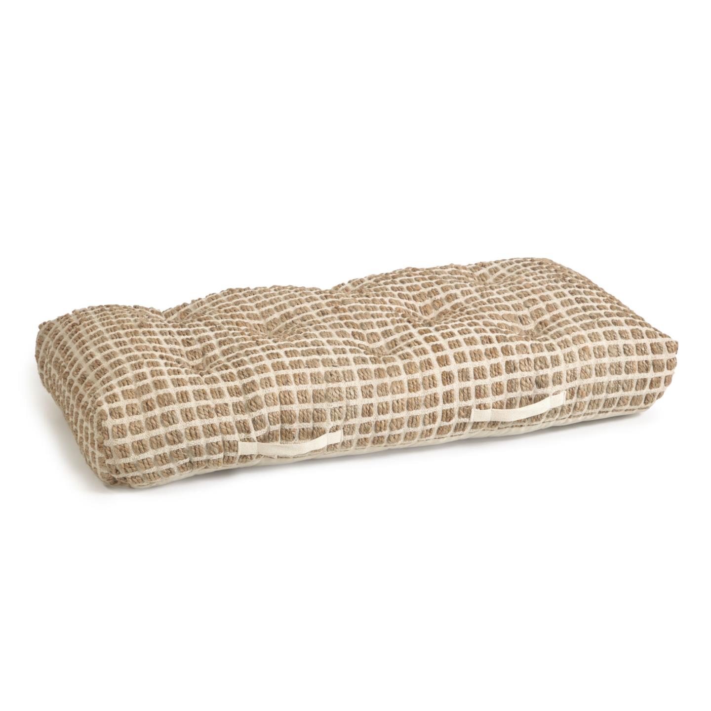 Vloerkussen Adelma is gemaakt van jute met een stijlvolle hoes van katoenen mesh, wat een boho-chique look oplevert. Ga voor natuurlijke materialen voor een trendy, moderne sfeer én een extra zitplaats.- Juten vloerkussen 60 x 120 cm met katoenen vulling