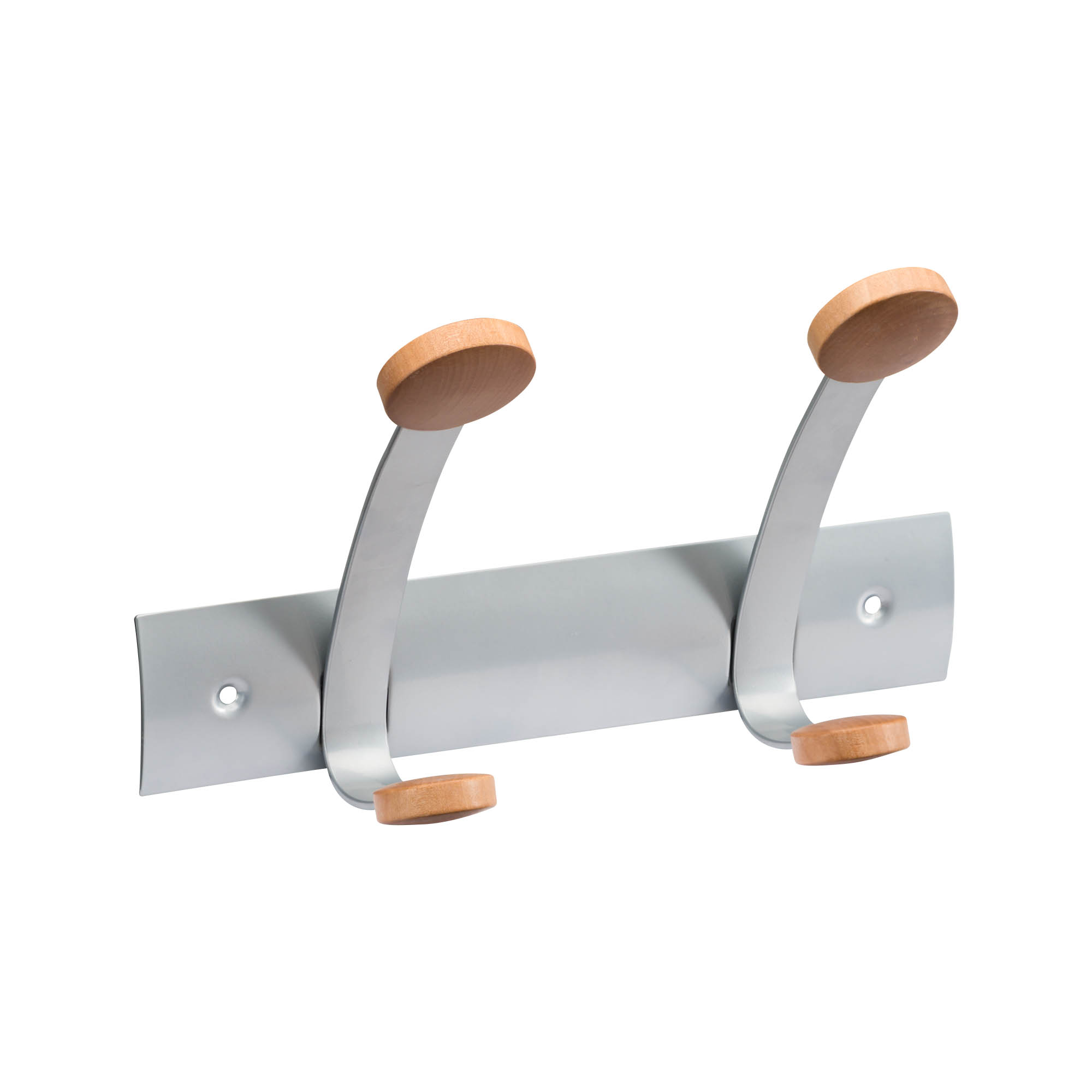 Deze dubbele wandkapstok is zeer stevig, en kan gemakkelijk dankzij 2 vijzen (inbegrepen) bevestigd worden. Kan tot 10 kg dragen.