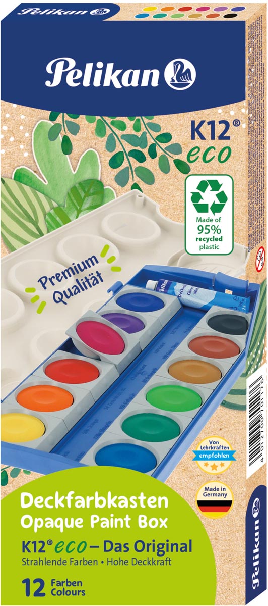 Deze doos bevat 12 gekleurde napjes briljante kleuren verf