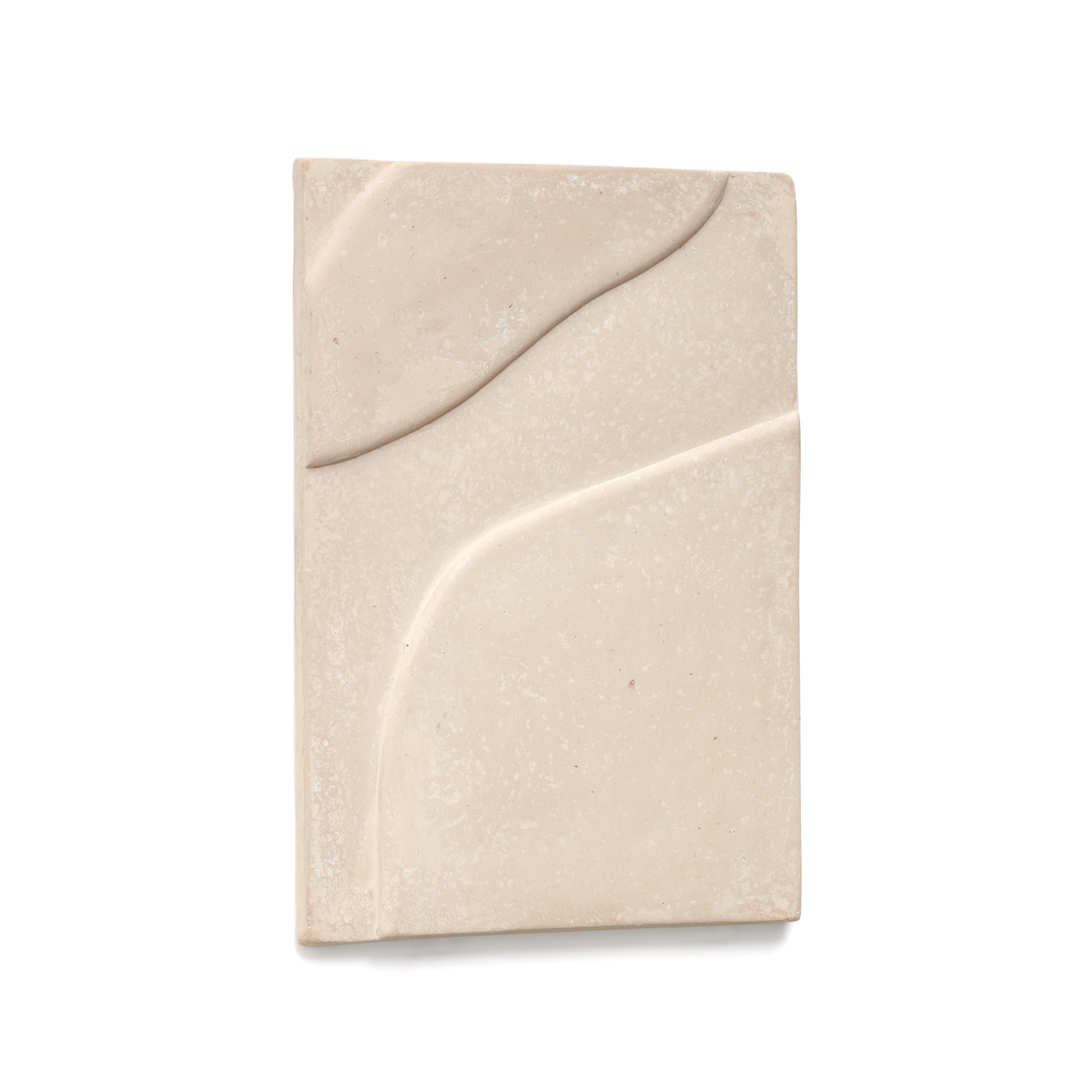 Ga voor gerecyclede materialen voor je interieur. De collectie Mirta-schilderijen is gemaakt van papier-maché, een trendy materiaal dat persoonlijkheid brengt in je kamers en tegelijkertijd zorg draagt voor de planeet.- Wit schilderij van papier-maché.