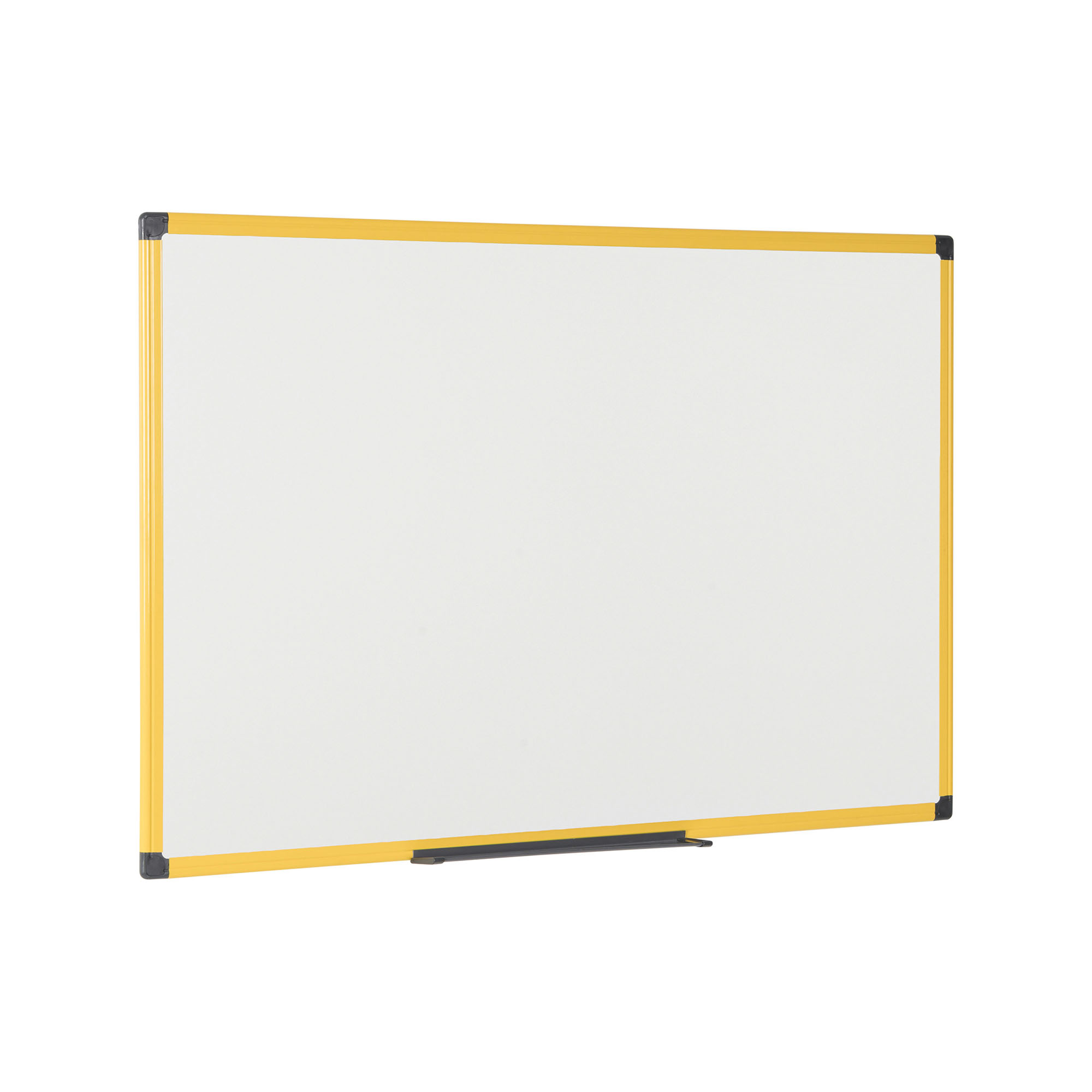 Het Bi-Office geëmailleerd whiteboard met een gele omlijsting van 150 x 100 cm zal aan uw communicatiebehoeften voldoen in een professionele omgeving. Voorzien van een hoogwaardig geëmailleerd stalen oppervlak, biedt dit whiteboard een zone voor droog uitwisbaar schrijven, dat tot 25 jaar gegarandeerd is. De royale afmetingen van 150 x 100 cm maken het een ideaal platform voor het tonen van berichten, notities, lijsten of andere benodigde informatie voor effectieve communicatie binnen uw bedrijf.