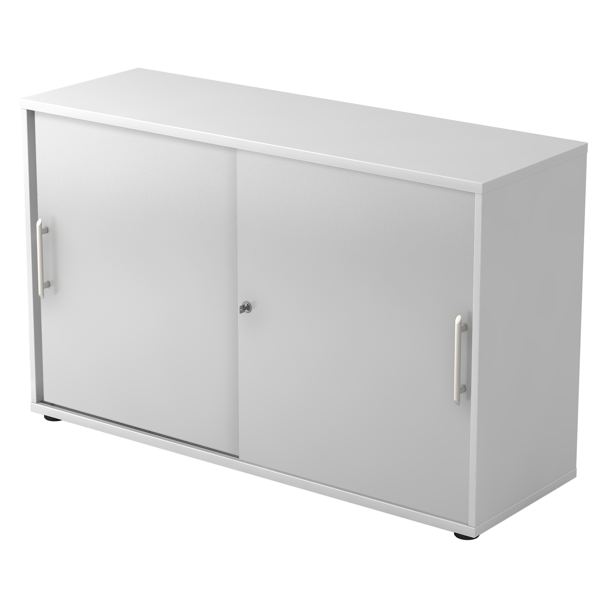 Structuur : spaanplaat bekleed met melaminelaag (DIN 68765 - Klasse E1). Voorzijde met 2 mm dikke beschermstrook in ABS, afgerond. Dikte zijkant: 16 mm, dikte boven- en onderkant: 22 mm. Rug: 3 mm (in groeven vastgeschroefd) - steeds zilverkleurig.Sluiting: loopgedeelte "Slide Line" onderaan op 2 wieltjes per deur in een geleider (met hoogteregeling) - bovenaan met 2 blokjes per deur in een geleider.Uitrusting: legplanken dikte: 16 mm, voorzijde met 2 mm dikke beschermstrook in ABS, afgerond. Hoogte is verstelbaar per 32 mm.Sokkel: 5 ronde pootjes (zwart - H 20 mm), bovenaan via de bodem in hoogte verstelbaar.Slot: drukcilinderslot, standaard sluiten beide deuren tegelijk (op aanvraag kan voor elke deur apart een slot bekomen worden).Handvat: zilverkleurig in kunststof, 128 mm. Draagvermogen: 25 kg/legplank.