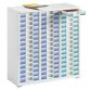 Structuur: epoxygelakt, wit gesatineerd metaal. Vijzels zijn aanpasbaar in hoogte. Kast met 3 kolommen. Laden voor formaat 24 x 32 cm, hoogte 6 cm. Zachte glijding. Ingebouwd handvat vooraan. Dubbele etikettering (geleverd met etiketten in verschillende kleuren). Geleverd met 45 laden. Schokbestendig polystyreen, kleur wit. Afmetingen: H 100 x B 93 x D 39,5 cm.