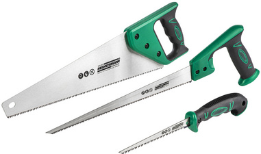 2-componenten antislip Softgrip handvat, zaagblad van mangaanstaal, tanden aan beide zijden geslepen, inductiegeharde tanden, ergonomische handgreep, met bladbeschermer, totaal gewicht: 835 g.