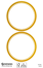 ProductinformatieRond, van papier, wit beschrijfbaar veld, verwijderbaar gouden reliëfkader, met de hand beschrijfbaar,inhoud: 3 vellen met 2 etiketten.