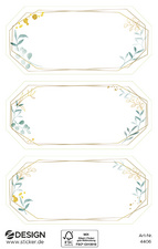ProductinformatieMet versierd kader, van papier, wit beschrijfbaar veld,ophangbaar reliëfkader, afneembaar, met de hand beschrijfbaar,inhoud: 3 vellen met 3 etiketten.