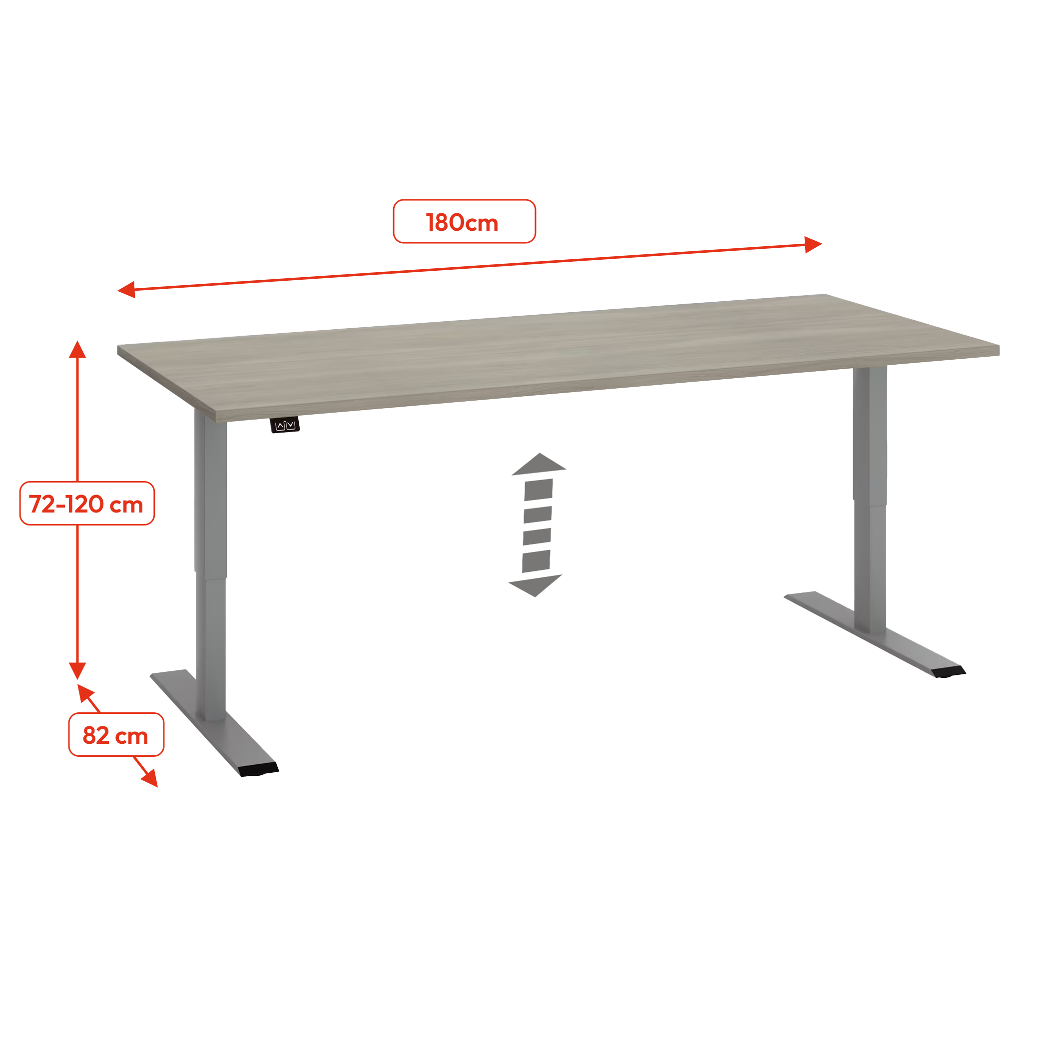 De hoogte van de werkpost is regelbaar via gemotoriseerde vijzels geactiveerd door 2 motoren van 72 tot 120 cm, uitgerust met een antibotsingsysteem.